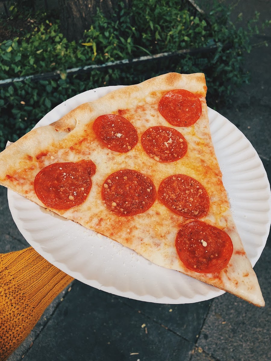 Some of the best pizza in NYC and THE best for it's price. Plus the slices are huge! And I grew up in Brooklyn, so I am a pizza snob! Oh..and they know how to reheat the perfect crispy slice! Nice staff, too.
